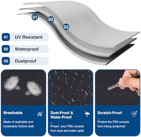 【Premium Elastic Neoprene Fabric】Suitable for PS5 Slim console providing more padding than plain weave fabric, waterproof, soft and delicate to touch, smooth lining, fine stitching. Tight fit to protect your console from dust, dirt, liquids, UV, scratches, pets and more.