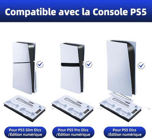 Advanced Cooling System: Equipped with a built-in turbo fan with 3 adjustable speeds (high, medium, low), with speeds of 4000/3500/3000 RPM. This system improves heat dissipation, ensuring your PS5 runs efficiently and stays cool during extended gaming sessions.