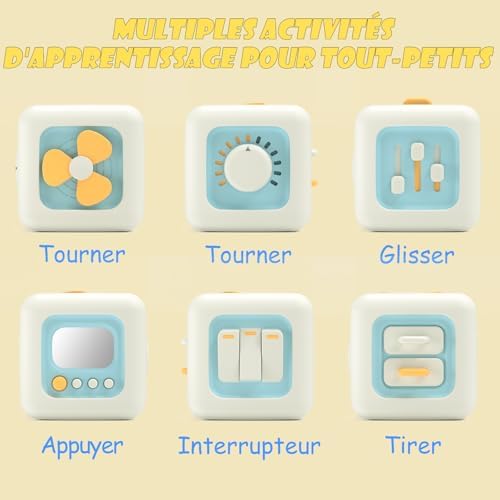 【Bien fait et Sûr】 : La sécurité de votre enfant est notre priorité; Notre cube sensoriel est fabriqué à partir de matériaux non toxiques et sans BPA et présente des bords poncés pour un jeu plus sûr. Il est facile à nettoyer, il suffit de l’essuyer avec un chiffon humide