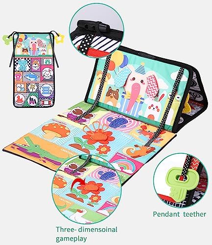 【Jouet d’éveil】 Les motifs en noir et blanc à fort contraste et les motifs colorés conviennent aux bébés à différents stades et peuvent favoriser le développement de leur vision. Le graphisme double face en papier crépon et les sons amusants attirent l’attention du bébé, éveillent son sens du toucher et sa perception sensorielle, et développent sa coordination main-œil. L’anneau de dentition rendra votre bébé plus confortable et répondra à ses besoins pendant la dentition.