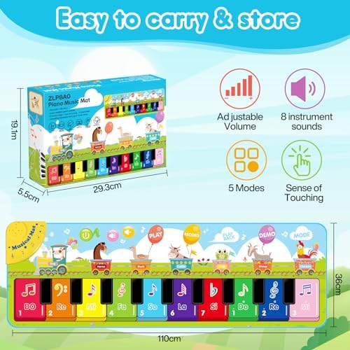 🎶Facile à Transporter : la taille de la musique du jouet pour bébé est de 110 x 36 cm, légère et pliable, facile à ranger ou à transporter à l’extérieur. Le tapis musical convient à une utilisation intérieure et extérieure et convient à 1 à 3 enfants pour jouer ensemble. piano bebe piano bebe tape pied tapis piano enfant.