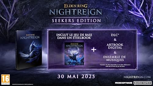 ELDEN RING NIGHTREIGN est une aventure se déroulant dans l’univers d’ELDEN RING, conçue pour offrir aux joueurs une nouvelle expérience en réimaginant la structure même du jeu. ENSEMBLE, LEVEZ-VOUSFaites équipe avec 2 autres joueurs afin d’affronter ensemble la nuit et les dangers qu’elle recèle.DEVENEZ UN HÉROSIncarnez des héros dotés de compétences uniques, chacun possédant ses propres capacités et son propre style. Chaque héros est puissant individuellement, mais en unissant vos forces, vous pourrez tirer parti de synergies et ainsi former une équipe implacable. DÉFIEZ LA NUITAffrontez la menace impitoyable qui ravage le monde. Adaptez-vous à un environnement qui évolue au fil des parties et terrassez des redoutables adversaires ! SEEKERS EDITION : · Un Steelbook (Contenant le jeu de base ELDEN RING NIGHTREIGN). · Un code pour le DLC du jeu · Un artbook digital · Un ensemble de musiques (format digital)
